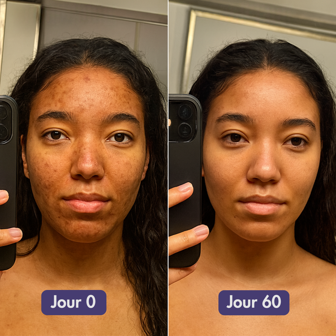 Beaucoup de femmes ont remarqué une amélioration de leur peau dès les premières utilisations. D’autres voient les tâches et boutons grandement diminuer entre la 2ème et la 3ème semaine d’utilisation.