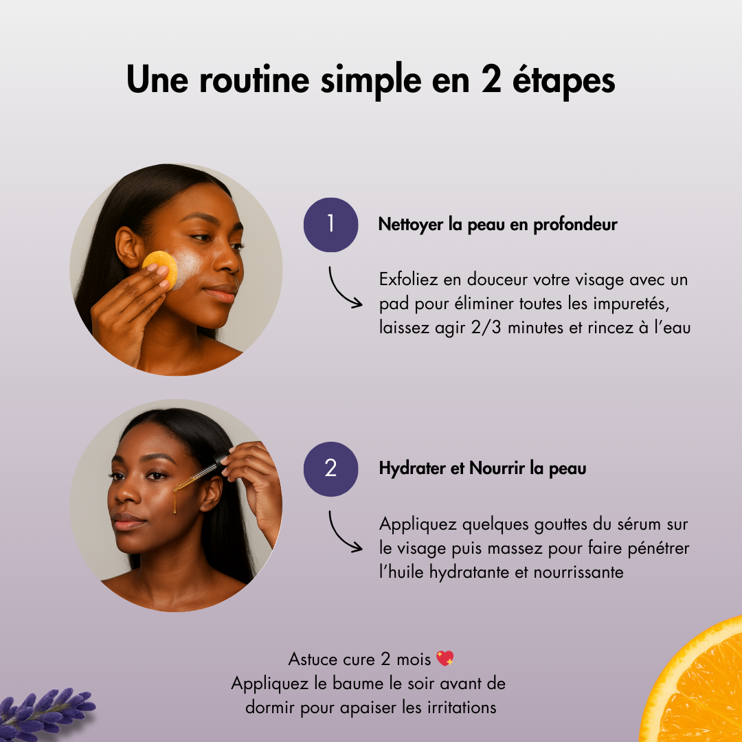 Nos soins et routines douces et non agressives ont été pensés pour toutes les peaux mates à noires, sèches ou grasses, sensibles ou à tendances acnéiques.